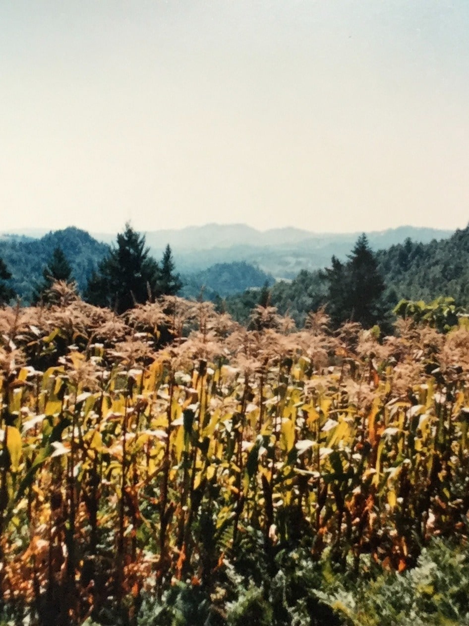 FARMER: We moved out here to develop a homestead, to support ourselves with the produce from the land. Tom would have the freedom to create art, and develop his own style, with whatever media he chose. We fenced in and cultivated a vegetable garden and sold produce to local stores and restaurants, We were able to get cuttings of trees from the Albert Etter orchards that he grafted on to hardy rootstock, and became the orchard that we have today. We also grow cannabis, with a legal cultivation license from the State of California. We work with our son and grandsons, and we are transitioning from farming to to art, for Tom to be able to focus on his art.