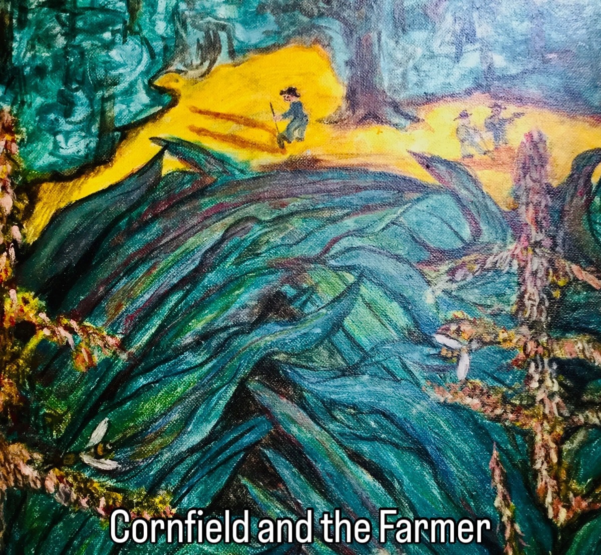 We also grow cannabis here on our farm that is legally licensed to cultivate cannabis. The cannabis plants occupy the space in the orchard between the trees. We grow everything using organic growing methods and have a very diverse garden, combining permaculture with regenerative farming techniques, We grow the highest quality sungrown cannabis, using seeds from plant strains that we have developed, and mother's to provide clones. The plants are grown directly in native soil, amended with organic nutrients, and we supply the water for the cannabis from a rain catchment pond. This micro-climate in coastal Northern California resembles the Mediterranean climate of hot dry days and cool nights, which is ideal for herbs. If you are interested in our farm, please visit our Instagram and Facebook pages for Amaranth Farms. We have photos of our production process, from seeds or clones grown in our nursery, to transplanting outdoors, cultivating, irrigating, harvesting, drying, and processing. As we are getting older, our son and grandsons are taking over the cannabis business, for Tom to have more time to concentrate on his art, and for me to present his artwork to the world.